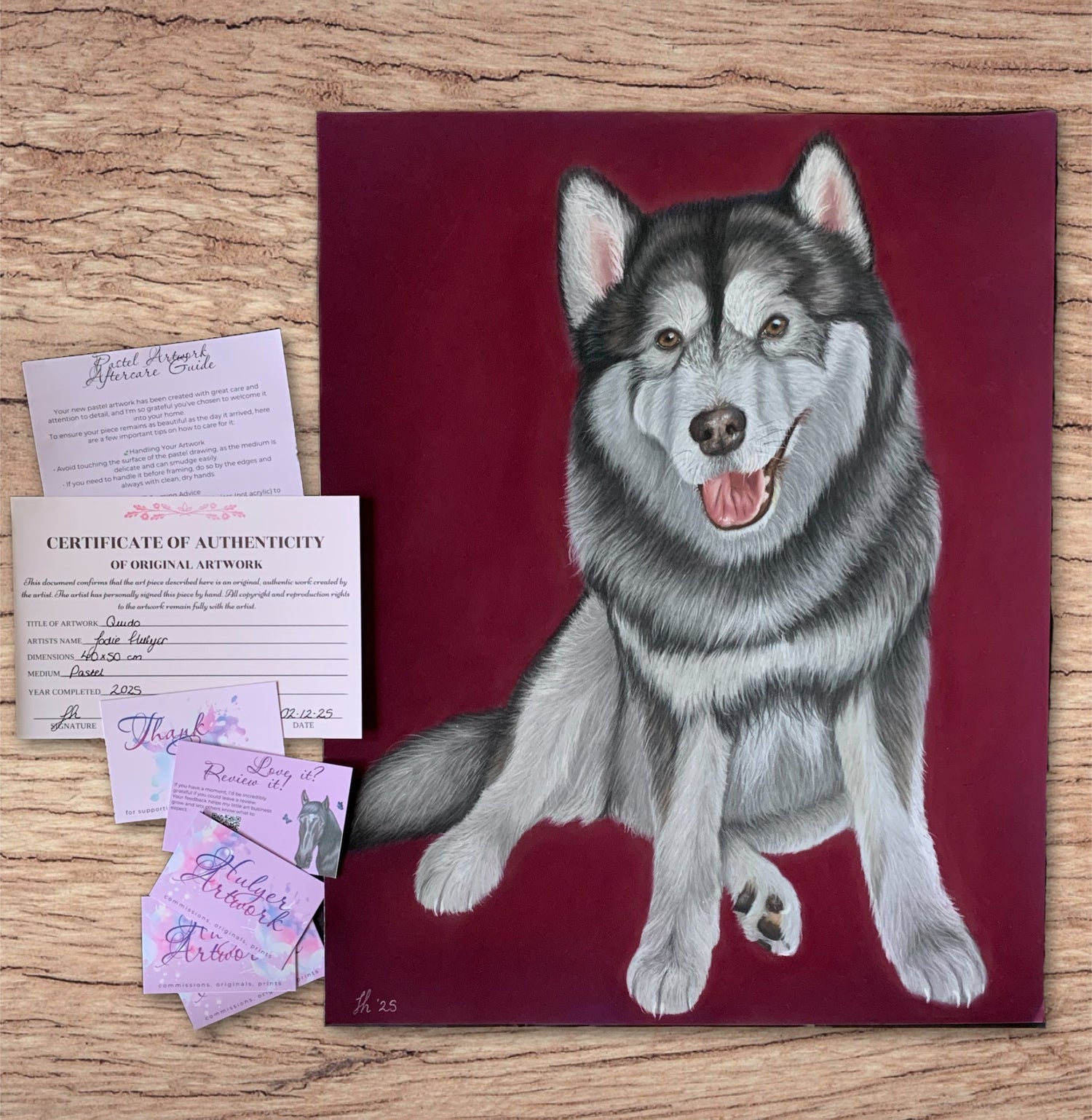 Create a stunning keepsake with my pet and person portrait commissions. Using high-quality Pastels or Charcoal, I deliver highly detailed and artwork tailored to your beloved subjects. Each portrait is meticulously hand-drawn with premium Faber Castell, Derwent, and Caran d'Ache Pastel pencils on Clairfontaine paper. I focus on capturing the unique personality of each subject, paying special attention to their eyes, as I believe they truly reflect their character.